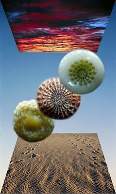 مجموعة من حبات الرمل منتقاة من كل انحاء العالم , ويلاحظ أن أحدها تتخذ على شكل قلب ..